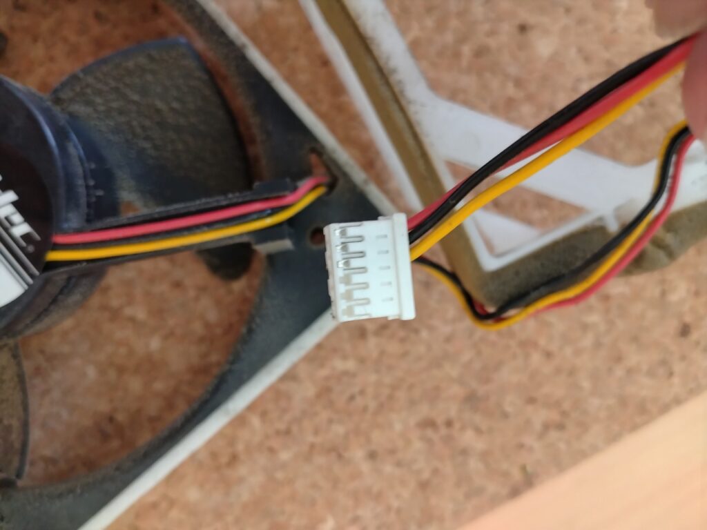 ファンの端子はここについていますので、左右の爪を押して外します。